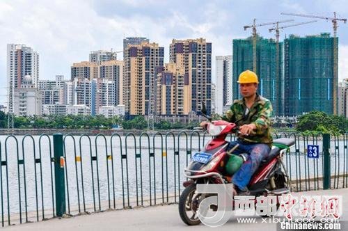 資料圖:海口國興大道附近的在建商品房項目。中新社記者 駱云飛 攝