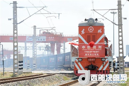 2018年6月13日,160輛進(jìn)口汽車(chē)搭載中歐班列“長(zhǎng)安號(hào)”整車(chē)進(jìn)口專(zhuān)列抵達(dá)西安港西安鐵路集裝箱中心站。 新華社記者 李一博 攝