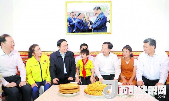 6月26日,自治區(qū)黨委書記、新疆生產(chǎn)建設(shè)兵團(tuán)黨委第一書記、第一政委陳全國陪同廣東省委書記李希,廣東省委副書記、省長馬興瑞,來到疏附縣吾庫薩克鎮(zhèn)托萬克吾庫薩克村看望慰問貧困戶阿布都熱西提·麥麥提一家。崔志堅 攝