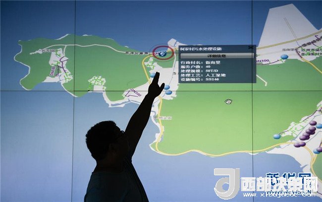 7月4日,蘇州市吳中區(qū)金庭鎮(zhèn)污水處理廠工作人員展示有實(shí)時(shí)監(jiān)控監(jiān)測、在線巡檢等功能的農(nóng)村獨(dú)立處理設(shè)施信息化管理平臺。新華社記者李響攝