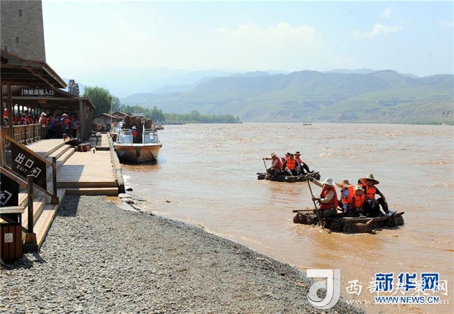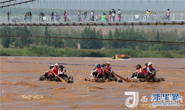 8月22日,游客在中衛(wèi)市沙坡頭旅游景區(qū)乘坐羊皮筏子游覽。沙坡頭旅游景區(qū)因地制宜發(fā)展沙漠旅游,旺季日接待游客量達(dá)兩萬人次。新華社記者伍婧丹攝