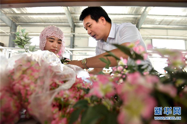 潘文賢(前排中)在寧夏固原市隆德縣隆德人造花工藝有限公司與企業(yè)員工合影(8月29日攝)。來自福建南安市的潘文賢2011年在隆德縣創(chuàng)辦隆德人造花工藝有限公司,成為隆德縣第一家集研發(fā)、生產(chǎn)和銷售于一體的勞動(dòng)密集型出口創(chuàng)匯企業(yè),產(chǎn)品遠(yuǎn)銷歐美及東南亞等國家和地區(qū)。截至2017年底,已成功打造隆德縣前莊村、紅崖社區(qū)等5個(gè)扶貧車間,幫助150人穩(wěn)定就業(yè)、218戶外加工戶靈活增收,帶動(dòng)300多個(gè)建檔立卡戶增收脫貧。新華社記者王鵬攝