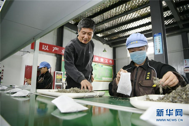 林玉清在寧夏固原市西吉縣寧夏澤艾堂生物科技有限公司查看艾草產(chǎn)品(8月30日攝)。來自福建莆田的林玉清2017年3月在西吉縣成立寧夏澤艾堂生物科技有限公司,依托西吉縣優(yōu)質(zhì)的艾草種植條件,采用“公司+合作社+農(nóng)戶”的訂單農(nóng)業(yè)合作模式,與吉強(qiáng)、新營(yíng)等鄉(xiāng)鎮(zhèn)種植專業(yè)合作社合作建成艾草種植基地11個(gè)、推廣種植艾草6000畝,為當(dāng)?shù)厝罕娒撠氈赂讳伨托侣纷印P氯A社記者郭緒雷攝