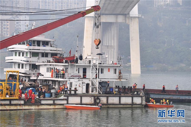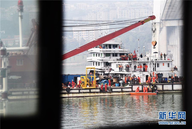這是10月30日拍攝的重慶萬州公交車墜江事故救援現(xiàn)場。新華社記者王全超攝