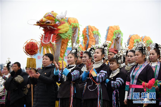 12月7日至9日,貴州省黔東南苗族侗族自治州黎平縣肇興、佳所等侗寨的侗族同胞身著節(jié)日盛裝,與賓朋歡聚一堂,通過(guò)盛裝巡游、鼓樓對(duì)歌、侗戲展演、舞龍、打年粑等特色民俗活動(dòng),歡度侗年。新華社發(fā)(楊文斌 攝)