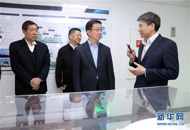 1月8日,中共中央政治局常委、國務院副總理韓正到國家能源局調(diào)研并主持召開座談會。這是韓正來到中國核電發(fā)展中心,了解核電發(fā)展現(xiàn)狀、自主創(chuàng)新和核心技術(shù)攻關(guān)、安全運行等情況。 新華社記者 劉衛(wèi)兵 攝