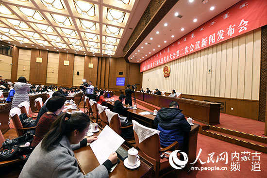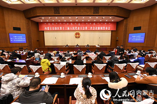 內(nèi)蒙古自治區(qū)十三屆人大二次會議新聞發(fā)布會現(xiàn)場。