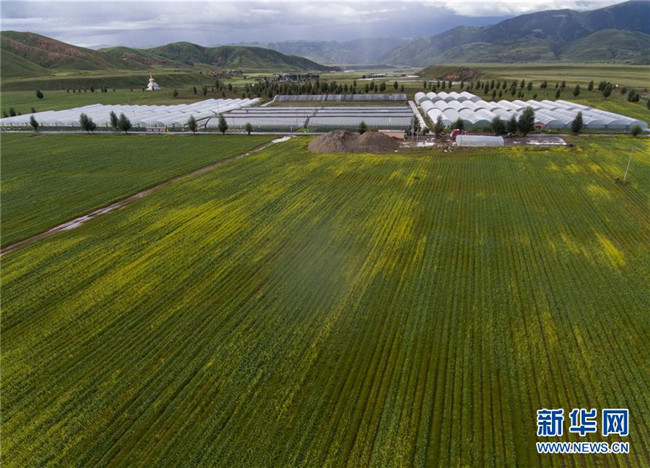 這是理塘縣濯桑鄉(xiāng)濯?,F(xiàn)代農(nóng)業(yè)雙創(chuàng)中心(2018年8月11日無人機拍攝)。理塘縣甲洼鎮(zhèn)、濯桑鄉(xiāng)等鄉(xiāng)鎮(zhèn)集中使用產(chǎn)業(yè)扶持資金,跨村集中抱團發(fā)展設施蔬菜大棚,讓貧困人口在園區(qū)獲得穩(wěn)定收益。新華社記者 江宏景 攝