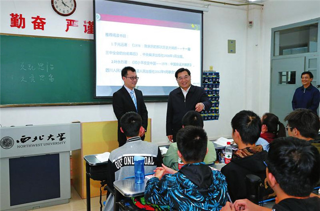 胡和平來到西北大學,隨堂聽取趙沛老師講授的毛澤東思想和中國特色社會主義理論體系概論,來到馬克思主義學院調研,了解思政課教師集體備課和博士生研討等情況。他強調,思政課是落實立德樹人根本任務的關鍵課程,要學深悟透習近平新時代中國特色社會主義思想,創(chuàng)新教學形式,激發(fā)課堂活力,引導學生樹立正確的世界觀、人生觀、價值觀,扣好人生第一粒扣子。