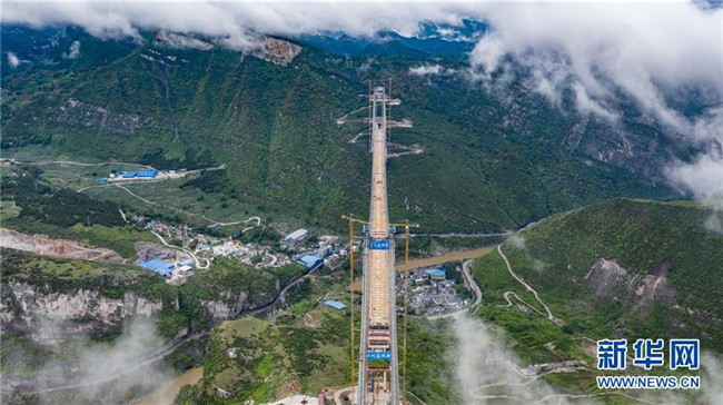 合龍中的江習(xí)古高速公路赤水河大橋(5月30日無人機(jī)拍攝)。 新華社記者 陶亮 攝