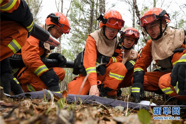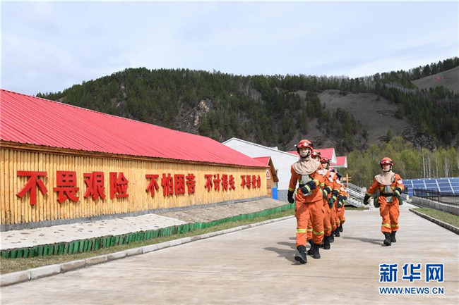 奇乾中隊的消防隊員在營地內訓練(5月15日攝)。新華社記者 劉磊 攝