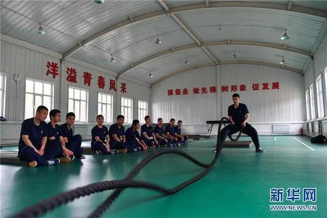 奇乾中隊的消防隊員在營地室內訓練(5月16日攝)。新華社記者 劉磊 攝