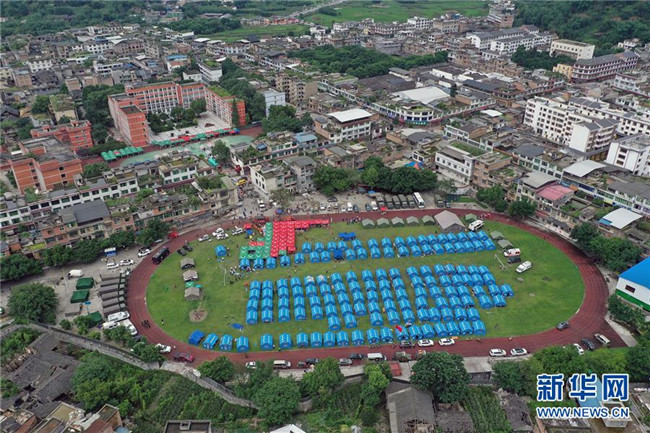 6月18日無人機拍攝的長寧縣雙河中學(xué)安置點。 新華社發(fā)(曾朗 攝)