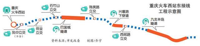 重慶日?qǐng)?bào)記者7月2日獲悉,市發(fā)展改革委近日正式批復(fù)了重慶火車西站東接線工程可行性研究報(bào)告。項(xiàng)目全長(zhǎng)9.4公里,呈東西走向,總投資約74.9億元,建成后將緩解重慶西站對(duì)外的交通壓力。