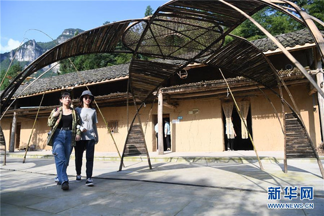 7月27日,在重慶武隆仙女山懶壩景區(qū),游客在“竹音劇院”內游玩。新華社記者 唐奕 攝