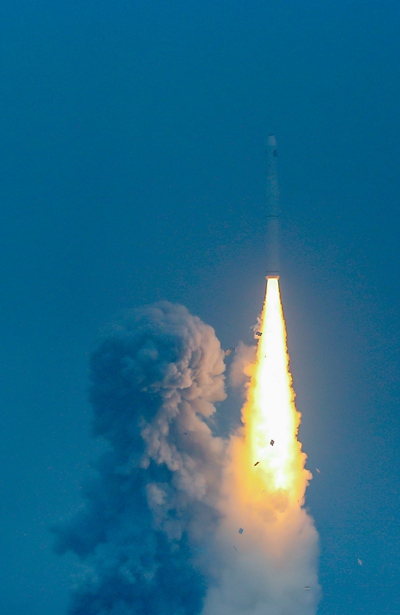 長征十一號(hào)運(yùn)載火箭海上發(fā)射瞬間。中國運(yùn)載火箭技術(shù)研究院供圖