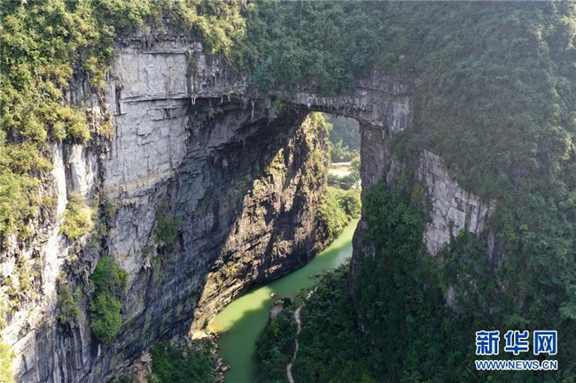 這是廣西羅城國家地質(zhì)公園天門山山洞(11月7日無人機(jī)拍攝)。