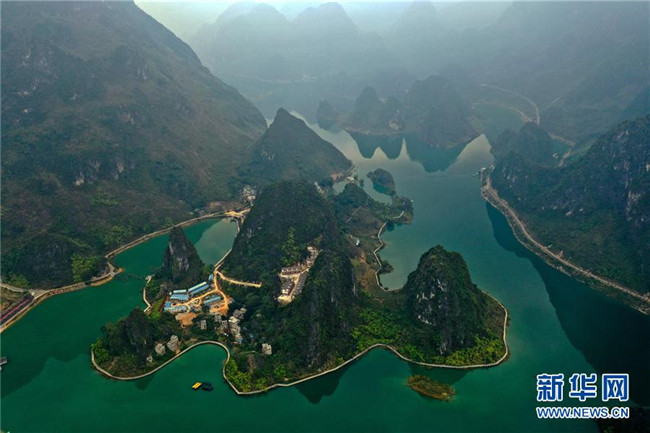 這是廣西凌云縣浩坤湖景區(qū)風(fēng)光(11月24日無(wú)人機(jī)拍攝)。新華社記者張愛(ài)林