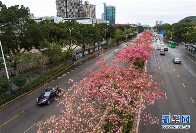 初冬時(shí)節(jié),廣西柳州市區(qū)東環(huán)大道、桂柳路等多條道路旁的1萬(wàn)多株美麗異木棉進(jìn)入花期,競(jìng)相綻放的紅色花朵將城市裝扮得格外美麗。 近年來(lái),廣西柳州對(duì)城市進(jìn)行花化、彩化、香化,著力打造生態(tài)花園城市景觀。