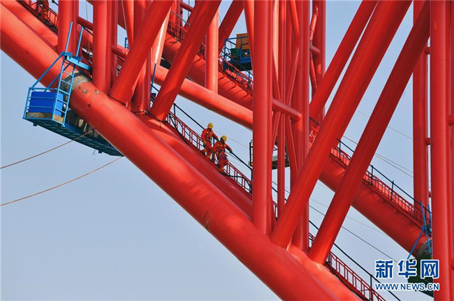 工人在平南三橋上施工(12月8日攝)。