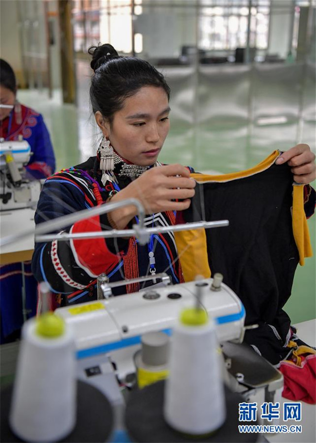 12月19日,工人在扶貧制衣車間工作。新華社記者 張超群 攝