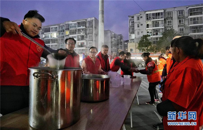 當日是冬至, 四川有喝羊湯的習俗。成都市雙流區(qū)黃甲街道100多名黨員志愿者聯(lián)合轄區(qū)內(nèi)羊肉館商家、社區(qū)愛心企業(yè),開展了“暖冬靚湯行”志愿服務(wù)活動,為上百名環(huán)衛(wèi)工人、40多個困難家庭送上暖洋洋的羊肉湯。黃甲街道冬至日送羊肉湯的愛心行動已經(jīng)堅持了11年。