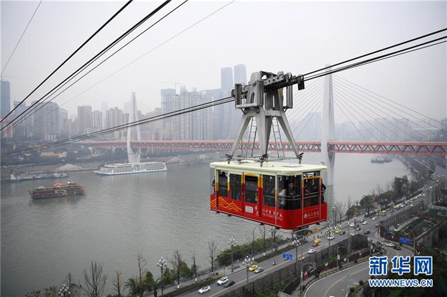 12月23日,“長(zhǎng)江索道”在重慶上空運(yùn)行。新華社記者 唐奕 攝