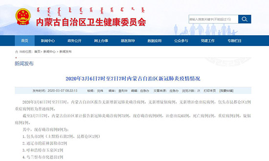 內(nèi)蒙古自治區(qū)衛(wèi)生健康委員會官網(wǎng)截圖