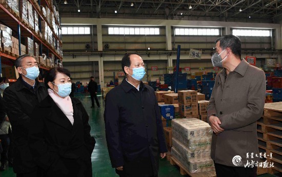 3月12日,自治區(qū)黨委書(shū)記、人大常委會(huì)主任石泰峰來(lái)到呼和浩特市沙良物流園區(qū),了解倉(cāng)儲(chǔ)物流運(yùn)輸情況。內(nèi)蒙古日?qǐng)?bào)社融媒體記者 袁永紅 攝