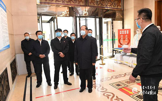 4月13日,自治區(qū)黨委書記、人大常委會(huì)主任石泰峰來到呼倫貝爾市滿洲里,調(diào)研入境人員隔離點(diǎn)防控工作情況。 內(nèi)蒙古日?qǐng)?bào)社融媒體記者 袁永紅 攝
