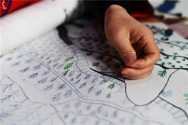 35歲的貧困戶張小容,因?yàn)檎煞蛞馔馐軅荒軇趧?dòng),一個(gè)人扛起了家庭的重?fù)?dān)。經(jīng)過(guò)培訓(xùn),現(xiàn)在她在苗繡工藝品公司上班,下班回家后還要加班繡香囊,每月有近3000元的收入。70多歲的婆婆有一次專門來(lái)公司看她,回家后再也不讓兒媳婦洗碗,怕傷到兒媳婦做苗繡的雙手。張小容說(shuō),能在照顧家人的同時(shí)增加收入,給了她堅(jiān)持的希望。