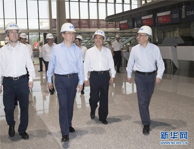 5月30日至31日,中共中央政治局常委、國務(wù)院副總理韓正在海南調(diào)研。這是5月30日,韓正在??诿捞m國際機(jī)場二期擴(kuò)建項目施工現(xiàn)場,了解規(guī)劃建設(shè)和投產(chǎn)運(yùn)營準(zhǔn)備情況。 新華社記者 王曄 攝