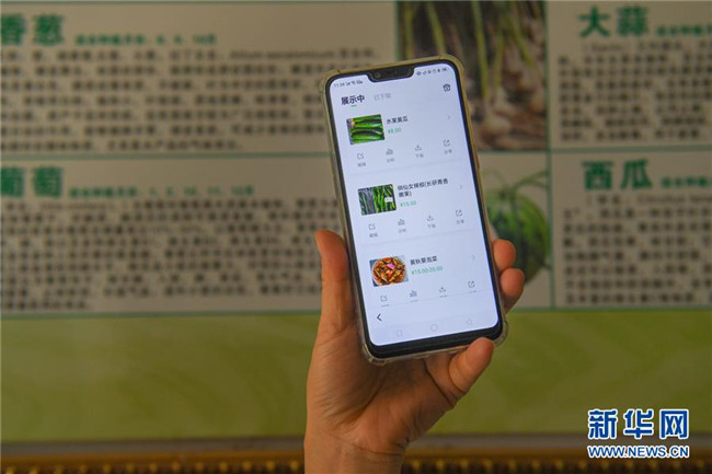 6月4日,在湘潭市雨湖區(qū)鶴嶺鎮(zhèn)龍安村,湘潭市仙女蔬菜產(chǎn)銷(xiāo)專(zhuān)業(yè)合作社的工作人員展示農(nóng)產(chǎn)品的微信購(gòu)買(mǎi)頁(yè)面。新華社記者 陳澤國(guó) 攝
