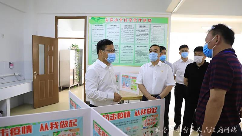 6月16日,長春市九臺區(qū)區(qū)長宋長者帶領(lǐng)區(qū)政府辦、教育局、衛(wèi)健局、市場監(jiān)督管理局等單位負責同志深入到區(qū)實驗小學,實地調(diào)研小學開學疫情防控工作。