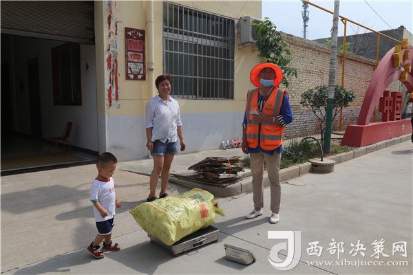 環(huán)衛(wèi)工人吳金玲對可回收利用垃圾進行稱重
