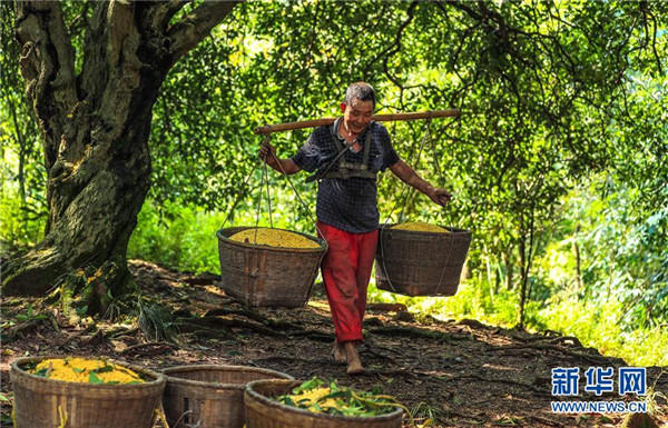 9月24日,四川省瀘州市江陽區(qū)鄰玉街道天堂村的村民在運送打收的桂花。金秋時節(jié),四川省瀘州市江陽區(qū)鄰玉街道天堂村的村民們忙著打收桂花,制作桂花糕等美食,迎接中秋佳節(jié)的到來。新華社發(fā)(劉學(xué)懿攝)