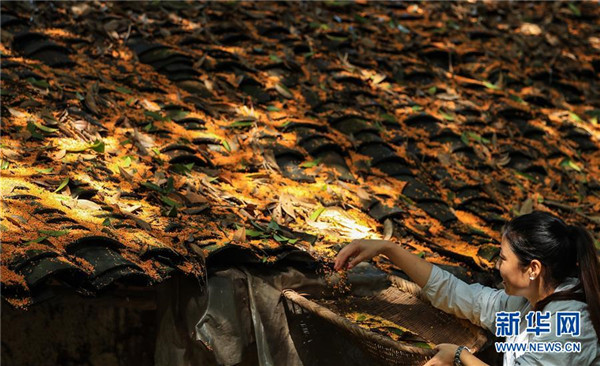 9月24日,四川省瀘州市江陽區(qū)鄰玉街道天堂村的村民在收撿散落在房頂上的桂花。金秋時節(jié),四川省瀘州市江陽區(qū)鄰玉街道天堂村的村民們忙著打收桂花,制作桂花糕等美食,迎接中秋佳節(jié)的到來。新華社發(fā)(劉學(xué)懿攝)