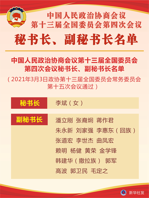 中國人民政治協(xié)商會(huì)議第十三屆全國委員會(huì)第四次會(huì)議秘書長(zhǎng)、副秘書長(zhǎng)名單