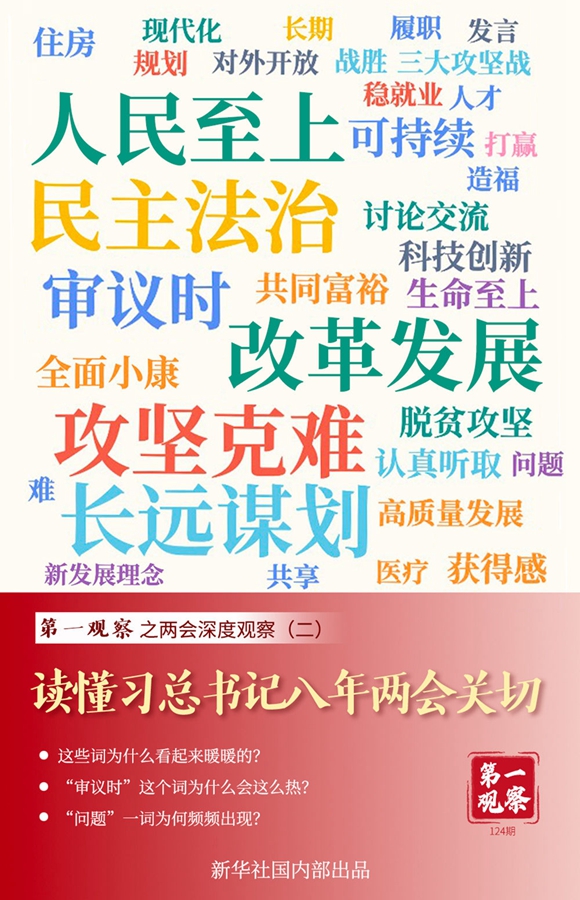 “去年有多少人娶媳婦兒”“農(nóng)家樂辦起來了嗎”……與長期扎根一線的代表委員面對面,總書記熱切詢問百姓冷暖;“養(yǎng)老”“穩(wěn)就業(yè)”“醫(yī)療”“住房”“社會救助”……著力解決人民群眾最關(guān)心最直接最現(xiàn)實的問題,總書記把它放在最突出位置。