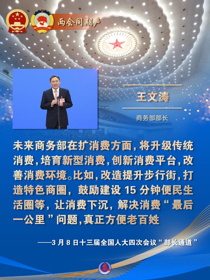 新的一年,消費(fèi)表現(xiàn)會(huì)如何?我國(guó)在擴(kuò)大開(kāi)放方面將邁出哪些新步伐?8日舉行的全國(guó)兩會(huì)“部長(zhǎng)通道”上,商務(wù)部部長(zhǎng)王文濤回應(yīng)了商務(wù)領(lǐng)域熱點(diǎn)問(wèn)題。