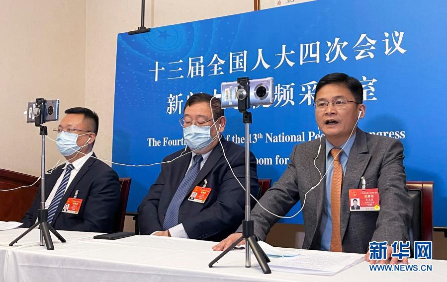 3月6日,全國人大代表在湖南代表團(tuán)駐地接受視頻采訪。新華社記者 熊爭艷 攝