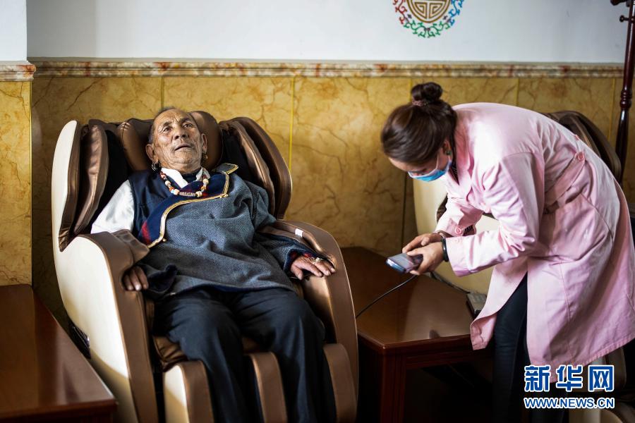 次旦在集中供養(yǎng)服務(wù)中心接受按摩服務(wù)(3月19日攝)。