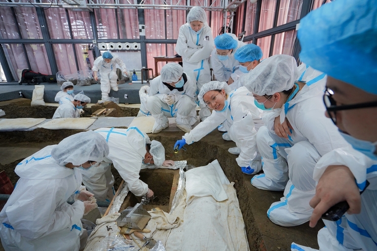北大考古實(shí)力相當(dāng)“硬核”,是中國高校第一個(gè)考古學(xué)專業(yè),在全國排名第一。但許丹陽和劉槃不同,他在報(bào)考考古專業(yè)的時(shí)候,完全是“稀里糊涂”的。“看著挺好玩的一個(gè)專業(yè),感覺會到處去游山玩水,就報(bào)上了。”結(jié)果發(fā)現(xiàn),考古與原來所想象的完全不一樣。考古是一項(xiàng)很嚴(yán)肅的、專業(yè)性很強(qiáng)的事業(yè),需要掌握多方面的理論知識,也需要很強(qiáng)的動手操作能力??脊诺拇_很好玩,會因?yàn)榘l(fā)掘到一件獨(dú)特的文物而歡呼雀躍,會因?yàn)槁皆谶h(yuǎn)古的廢墟而沉浸其中,也會因?yàn)榻忾_了一個(gè)小小的歷史謎題而興奮不已。考古也會有艱辛,尤其是下工地。有考古學(xué)人編了這樣的段子:“遠(yuǎn)看像逃難的,近看像撿破爛的,仔細(xì)一問,原來是考古勘探的”。雖是自嘲,卻也表明了田野考古的不易。好在好學(xué)的許丹陽發(fā)現(xiàn),考古并不是一門孤立的學(xué)科,不但要掌握考古學(xué)本身的理論方法,而且需要跟很多學(xué)科進(jìn)行跨學(xué)科研究,因此說它需要“上知天文下知地理”也不為過。后來許丹陽越學(xué)越覺得有趣,也越來越深愛這份職業(yè)。許丹陽“入坑”已經(jīng)好幾個(gè)月了,從去年10月9日4號坑正式開啟發(fā)掘,到今年1月16日,才確認(rèn)找到了一段象牙。在他看來,每一勺土,都是承載著歷史痕跡的,每一個(gè)時(shí)刻,都是驚心動魄、跌宕起伏的,因?yàn)橐徊恍⌒?,就會見證到古老文物的重見天日。高強(qiáng)度的工作之余,許丹陽目前下班后最想做的事情就是睡覺,從頭天晚上一覺睡到第二天中午,給自己充上滿格電再繼續(xù)投入到新一輪的“挖土”中。