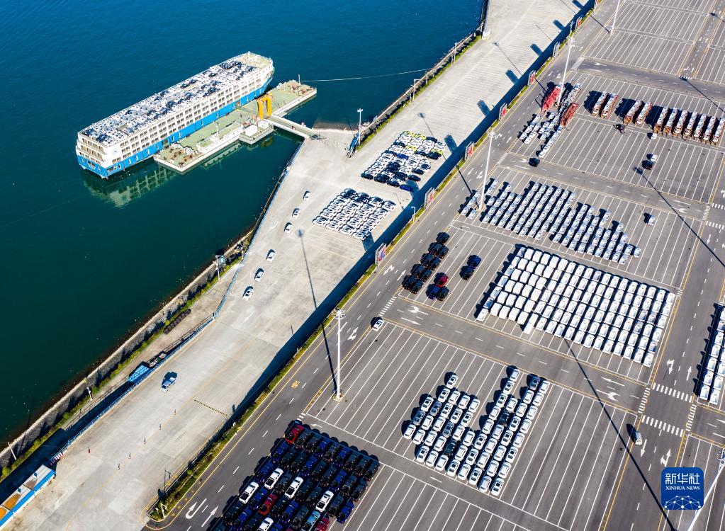 這是三峽庫區(qū)湖北省宜昌市秭歸縣秭歸港車輛分撥轉(zhuǎn)運(yùn)現(xiàn)場(chǎng)(2020年11月13日攝,無人機(jī)照片)。新華社發(fā)(鄭家裕 攝)
