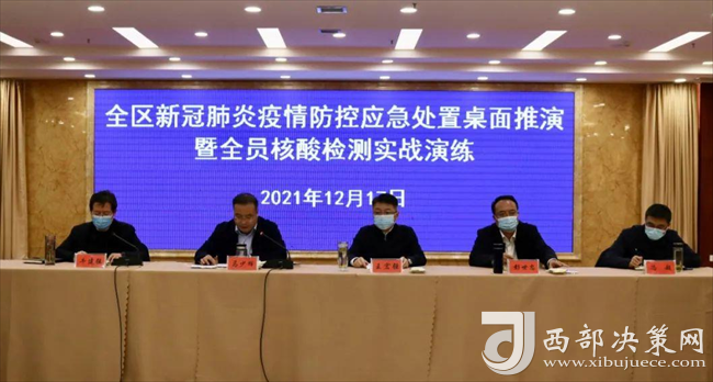 西部決策網(wǎng)訊(韓宗憲 通訊員 陳珊珊)12月17日,寶雞市鳳翔區(qū)新冠肺炎疫情防控應(yīng)急處置桌面推演暨全員核酸檢測(cè)實(shí)戰(zhàn)演練在白玉蘭酒店舉行。鳳翔區(qū)疫情防控專(zhuān)班、區(qū)疫情防控相關(guān)部門(mén)、各鎮(zhèn)、區(qū)流行病學(xué)調(diào)查組各成員單位等參加演練。區(qū)委區(qū)政府主要領(lǐng)導(dǎo)現(xiàn)場(chǎng)觀摩了本次實(shí)戰(zhàn)演練。