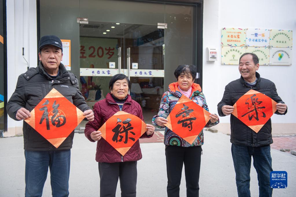 1月18日,江北區(qū)桃源小區(qū)的居民在“長(zhǎng)者之家”寫“福”字。該小區(qū)老年人居住比例較高,在老舊小區(qū)改造過(guò)程中,街道將小區(qū)內(nèi)閑置用房改造成集老年大學(xué)、幼兒托管等為一體的“長(zhǎng)者之家”。新華社記者 江漢 攝