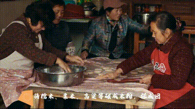 將糯米、粟米、高粱等碾成米粉,揉成團(tuán)