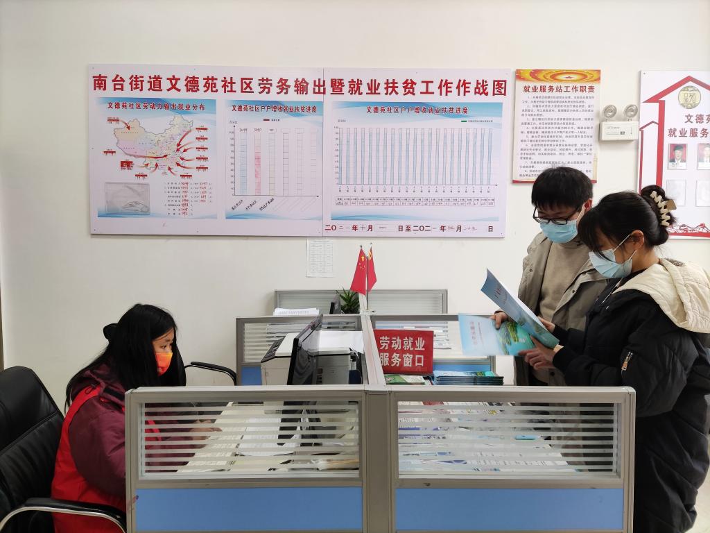 1月10日,鎮(zhèn)雄縣文德苑社區(qū)就業(yè)幫扶工作站工作人員在工作。 新華社記者 林碧鋒 攝