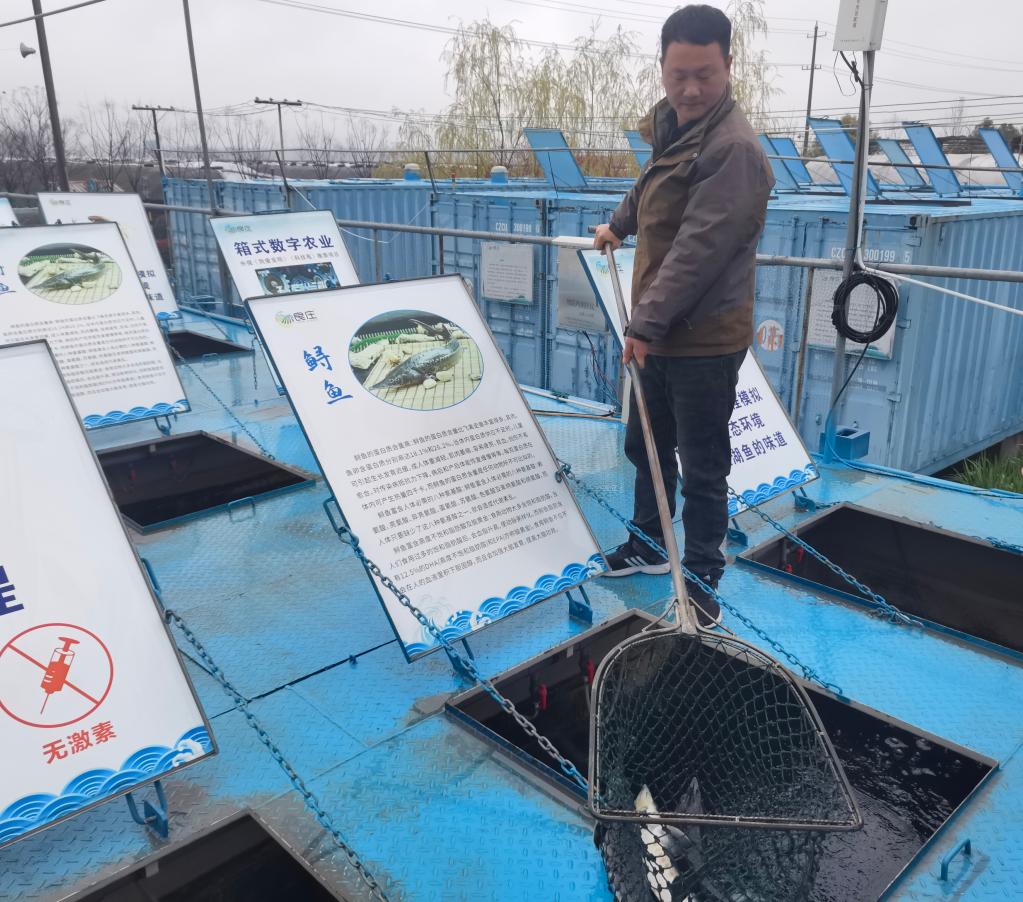 “我們模擬活水循環(huán),采用尾水處理、養(yǎng)殖廢水利用等方式,打造適合魚類生長(zhǎng)的環(huán)境,實(shí)現(xiàn)全程可控化、標(biāo)準(zhǔn)化生產(chǎn)。”良莊農(nóng)業(yè)科技園負(fù)責(zé)人陳金良告訴記者,與普通魚塘相比,集裝箱養(yǎng)殖同等數(shù)量的魚,可以節(jié)約土地資源和水資源均在90%以上,“這個(gè)智慧漁場(chǎng)有70個(gè)集裝箱,一年能產(chǎn)魚約40萬斤。”