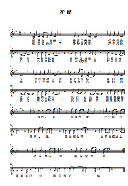 慶祝建黨百年獲獎歌曲作品選集——《護航》歌詞。